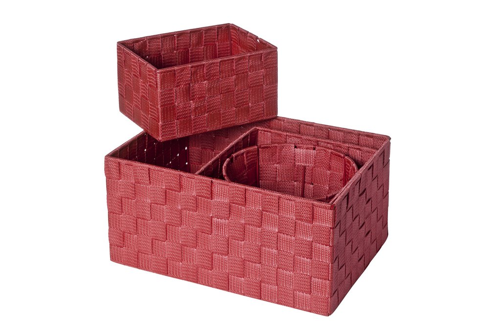 Un set de 4 paniers fait en tissus et de couleur rouge