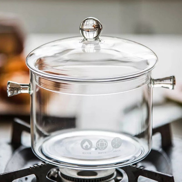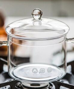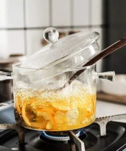 Une soupière en verre avec couvercle d’une capacité de 1900 ml faite pour résister aux températures extrêmes passable sur le feu et sur plaque