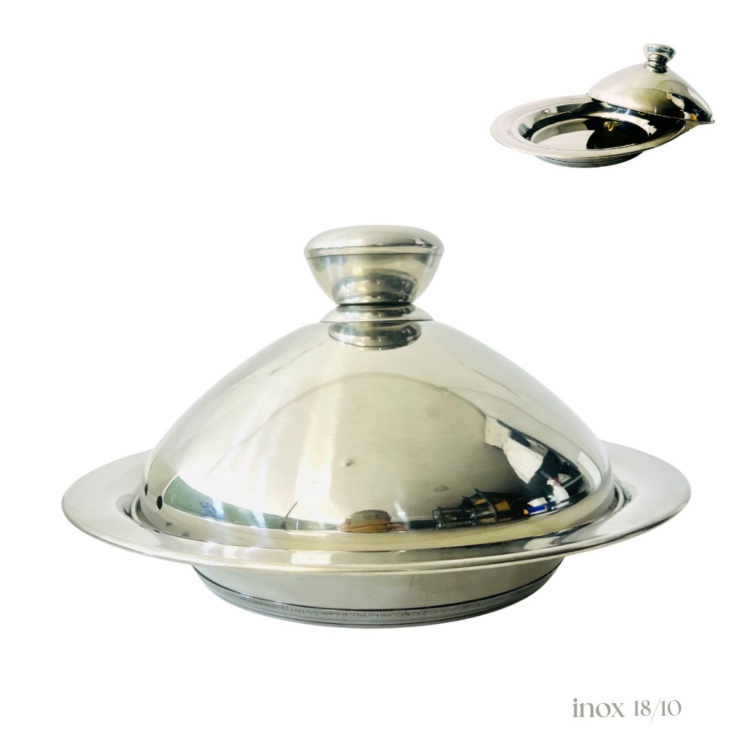 Apportez une touche d’authenticité à votre cuisine avec notre tajine en inox 18/10 de 30 cm de diamètre, qui allie qualité et performance pour une cuisson optimale de vos plats. Fabriqué en inox 18/10, ce tajine garantit une excellente résistance à la corrosion et à l’usure, tout en assurant une répartition uniforme de la chaleur pour une cuisson parfaite. Son diamètre de 30 cm est idéal pour préparer des repas en famille ou entre amis, offrant suffisamment d’espace pour vos ingrédients. Doté d’un revêtement à 2 couches et antiadhérent, ce tajine permet une cuisson saine sans ajout excessif de matières grasses, préservant ainsi les saveurs naturelles de vos aliments.
