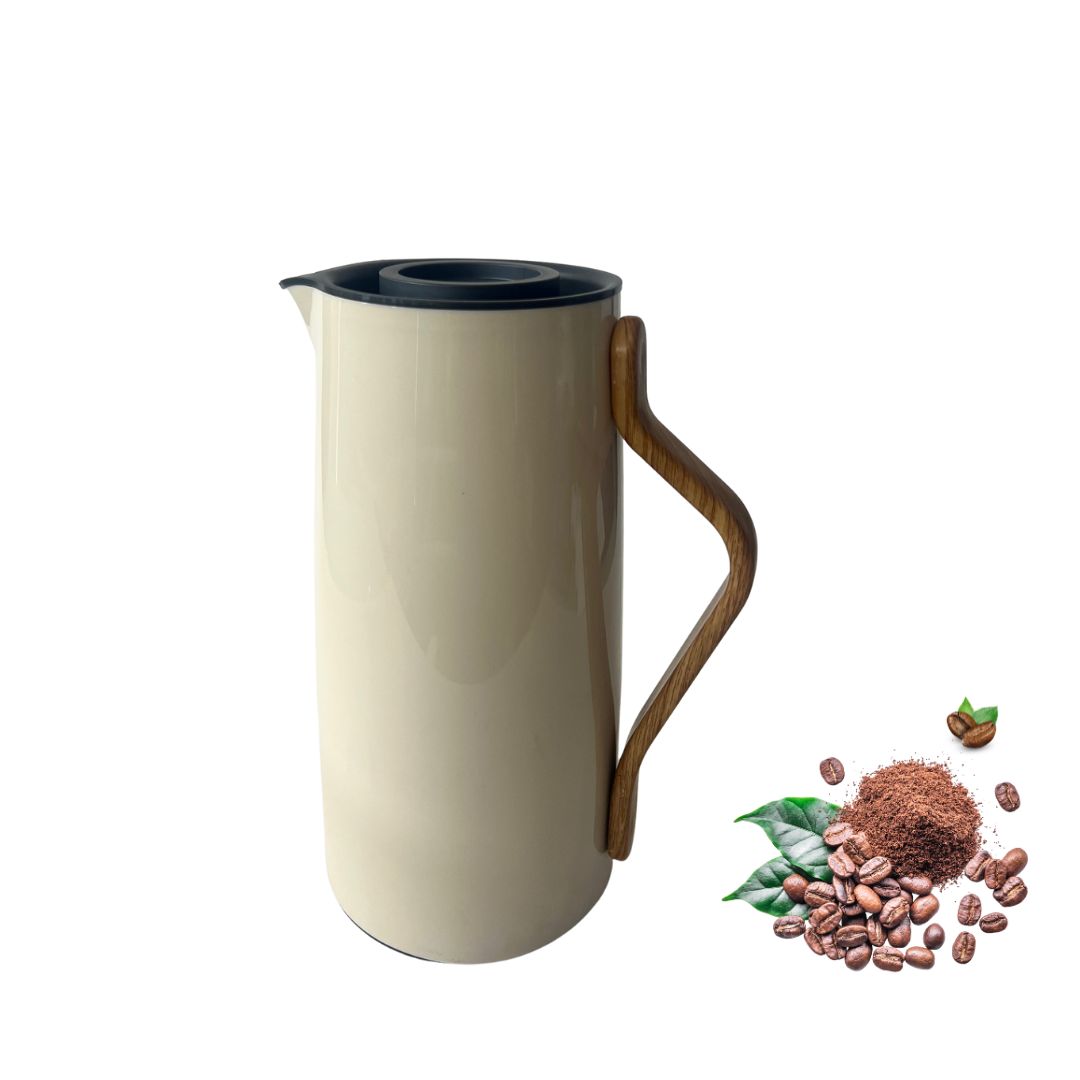 Un thermos d’une contenance de 1 litre de couleur beige avec une main en bois et un bec verseur qui peut garder les boissons chaudes pour une durée de 8 heures. Parfait pour les amateurs de boissons chaudes et froides, idéal pour le café du matin ou le thé de l’après-midi, tandis que sa capacité à garder les liquides froids est de 24 heures.