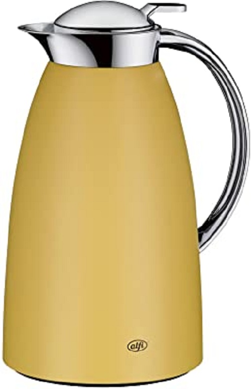 Un thermos de la marque allemande Alfi d’une capacité de 1 litre de couleur moutarde