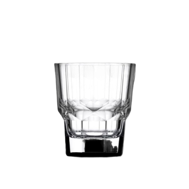 Une petite verrine transparente de la marque Pasabahce de 6 cm de hauteur et de 5 cm de diamètre d’une capacité de 40 cc